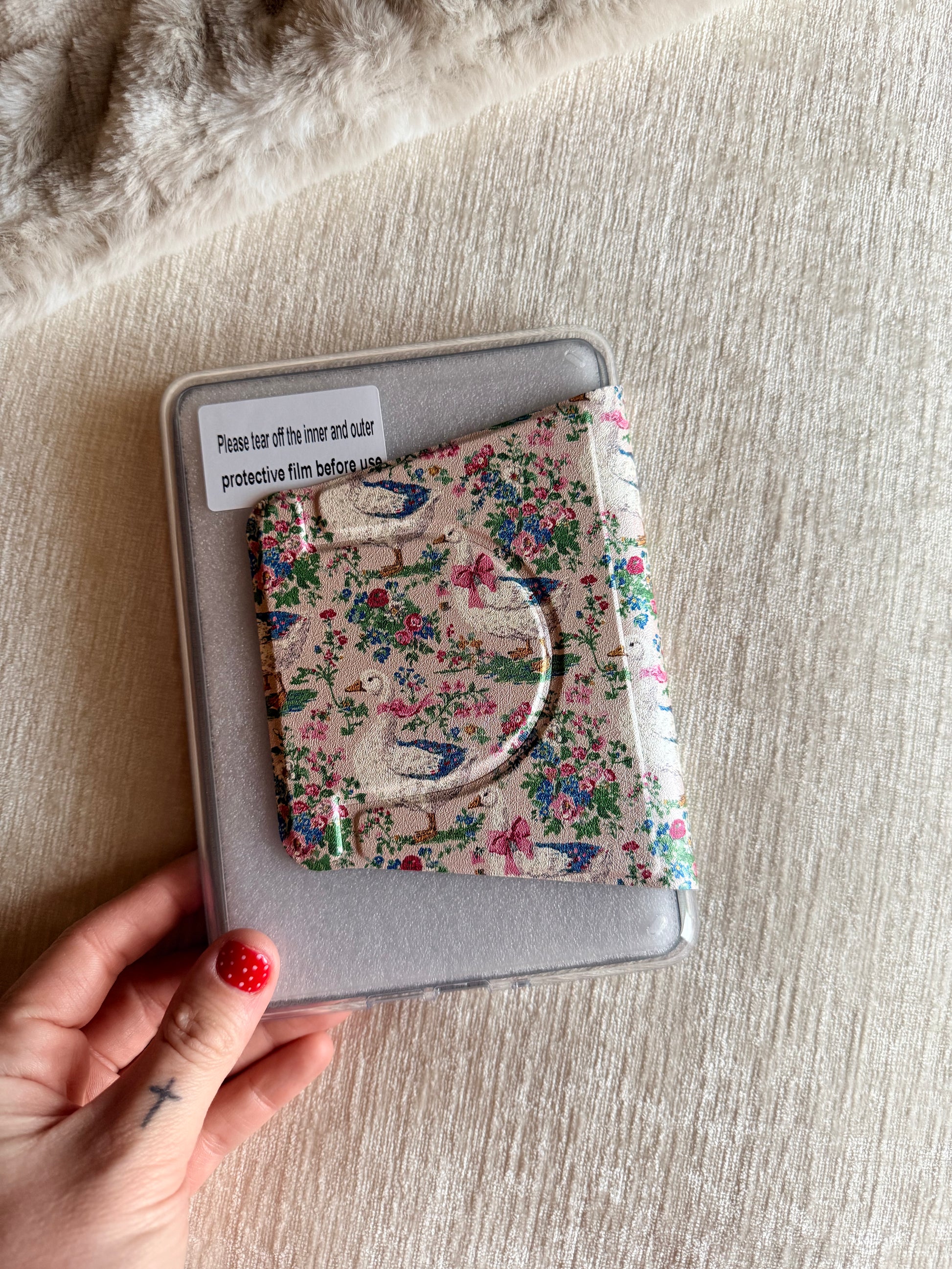 Detachable kindle case with a magnetic ring to attach a magnetic grip! Clear back for all your cute stickers ā¤ļø